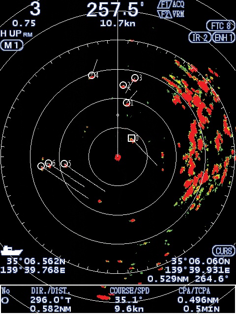 True trail function * - The display shows exactly the movement of other vessels like drawing tails, while land and buoys are shown as stationary objects even while your vessel is moving. This makes it easy for you to distinguish moving from stationary objects